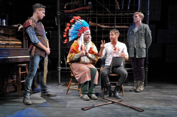 From left: Evan Murphy, Joshua Pemberton, Gus Curry, and Tom Hamlett in a scene from the SpeakEasy Stage Company production of Bloody Bloody Andrew Jackson, running now thru Nov. 17 at the Calderwood Pavilion at the Boston Center for the Arts, 527 Tremont St., Boston. Tix/Info: 617-933-8600 or SpeakEasyStage.com. Photo: Craig Bailey/Perspective Photo.