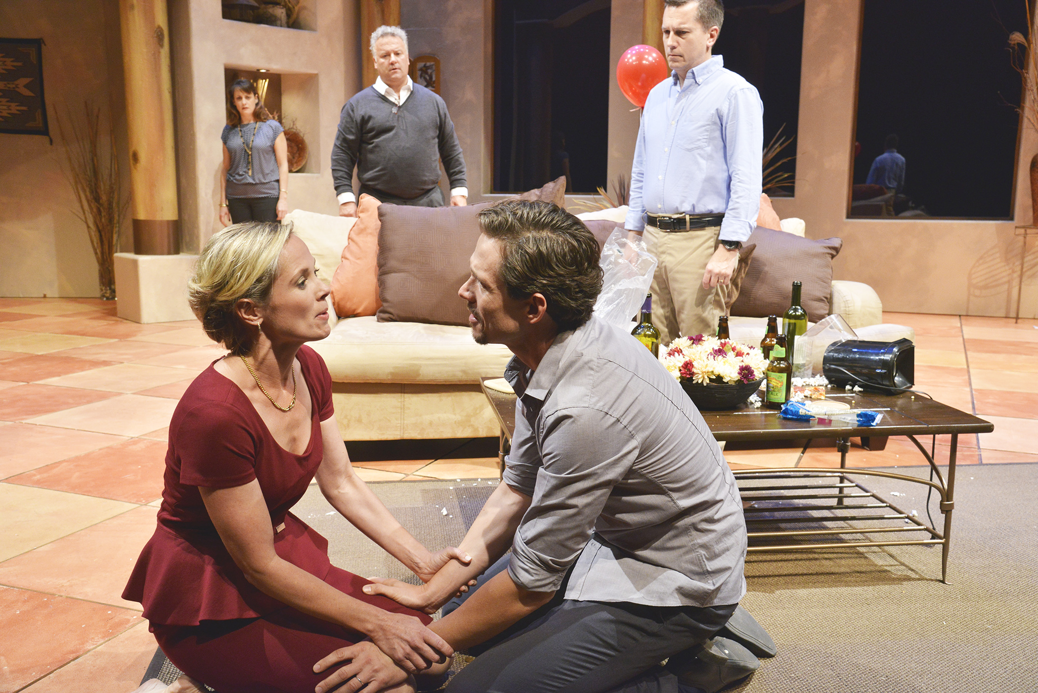 A dinner party is on tap in the home of Diane (Tamara Hickey) and her designer husband Nick (Lewis Wheeler) in Rancho Mirage, the gated community in question. Their neighbors Trevor (Robert Pemberton) and Louise (Abigail Killeen) are coming by, as well as Charlie (John Kooi) and Pam (Cate Damon), who don’t live in the development but are longtime friends who find themselves there quite often.
