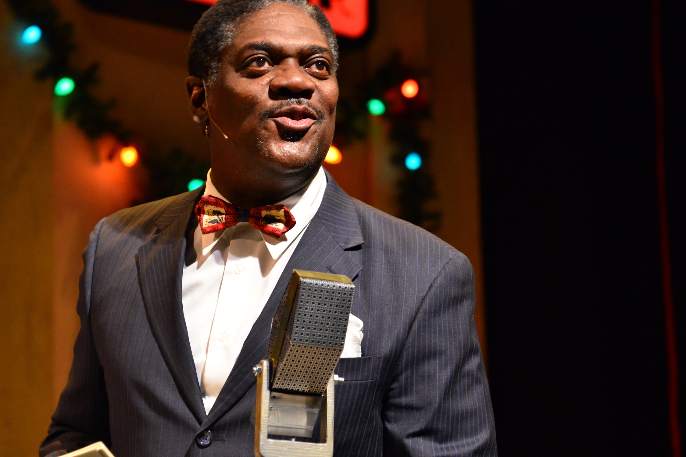 The mellifluous voice of Johnny Lee Davenport is given quite a workout as Freddie Fillmore, the host of the evening’s broadcast. It’s not for the faint-hearted as has to juggle an almost staggering number of characters, at times having a conversation with himself between back-and-forth as both a stammering Uncle Billy and the villainous Henry F. Potter.