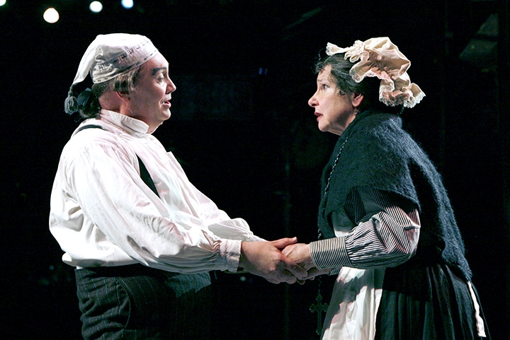 David Coffee as Ebenzer Scrooge and Cheryl McMahon as Mrs. Dilber in “A Christmas Carol.” Photo: Paul Lyden