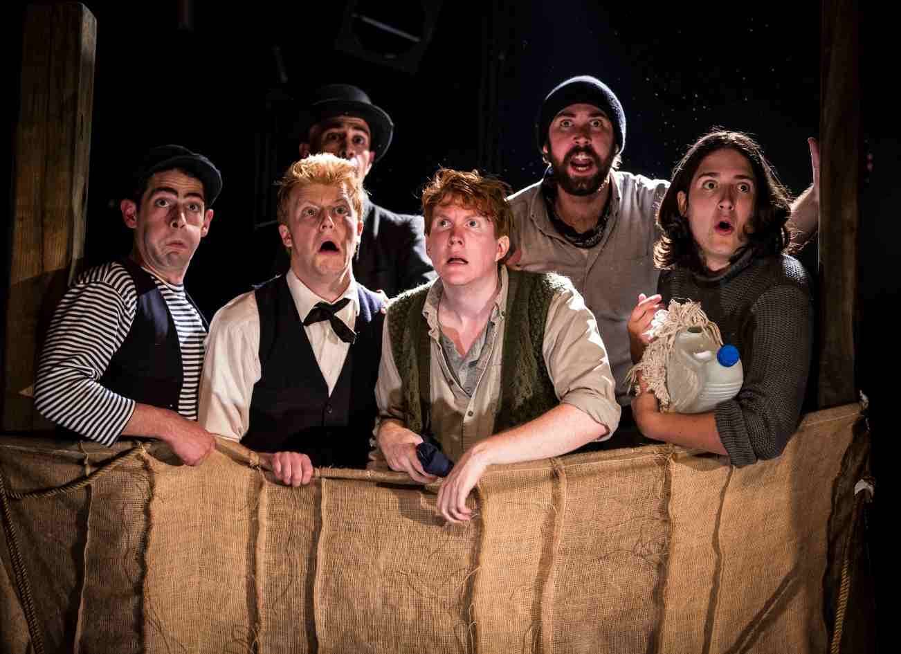 Curtis Gillen, Matt Nuernberger, Arya Shahi, Ryan Melia, Ben Ferguson, Dan Weschler in the PigPen Theatre Co.’s “The Old Man and the Old Sea.”Photo: Liz Lauren