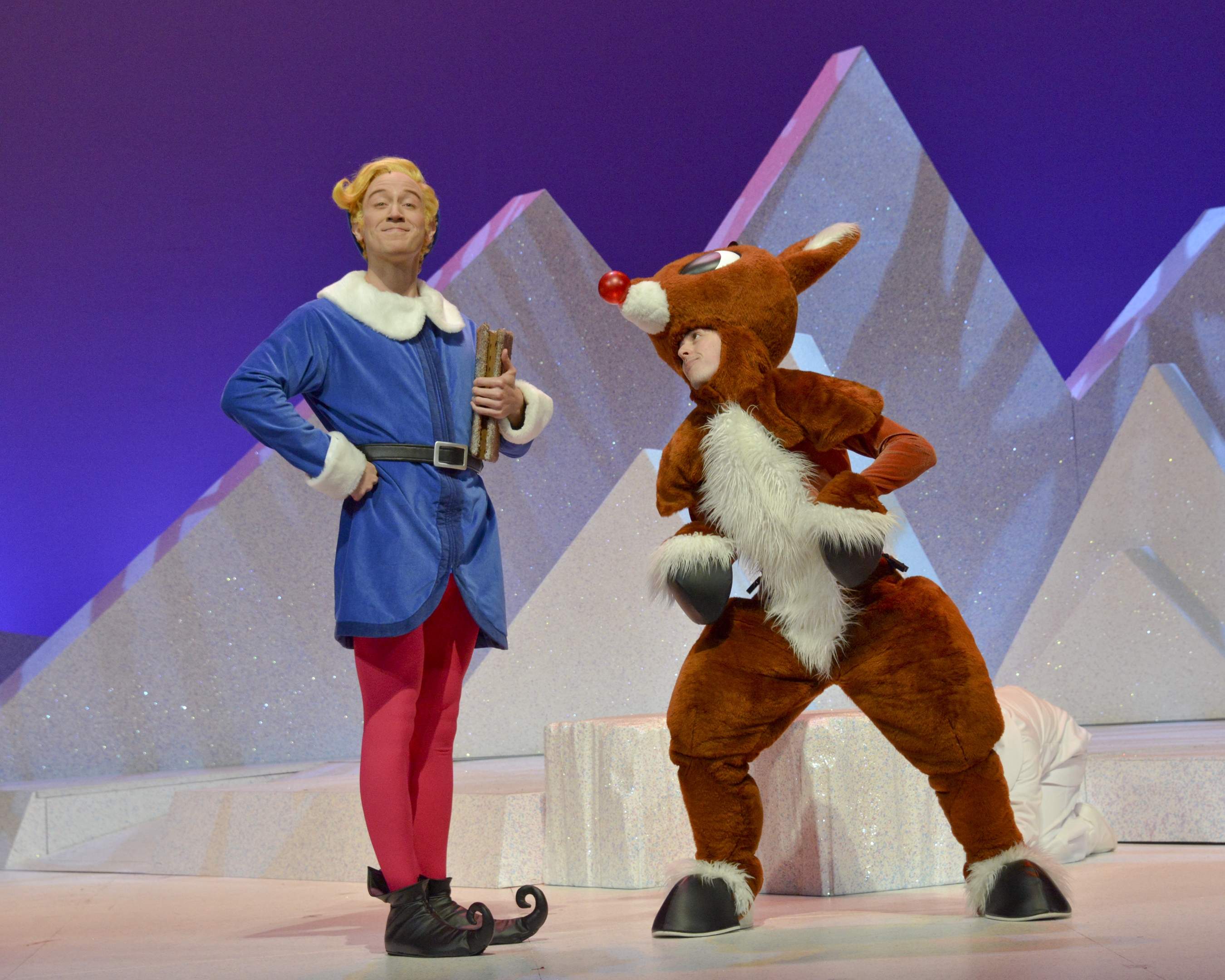 Even the narrator of the show — Sam the Snowman (Ryan Coon) — looks suspiciously like — make that exactly like the animated character, which in turn looked exactly like the late Burl Ives, who narrated the animated special and whose voice became synonymous with the song “Rudolph, the Red-Nosed Reindeer.” Sam even plays the banjo just like Burl Ives, a task incredibly hard for a snowman.