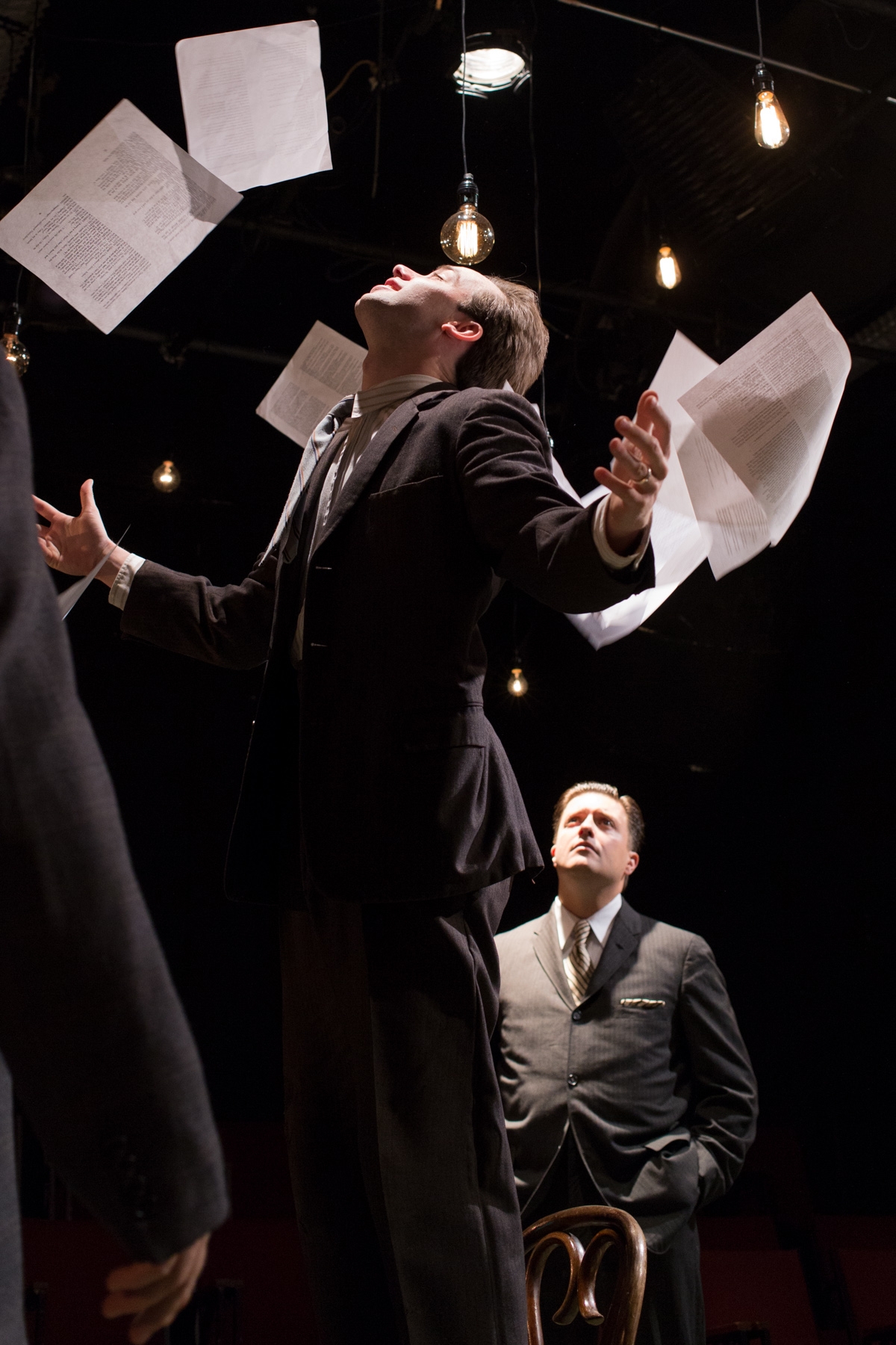Chris Larson as Philo Farnsworth and Michael Fisher as David Sarnoff in “The Farnsworth Invention.” Photo: Jake Scaltreto, Flat Earth Theatre