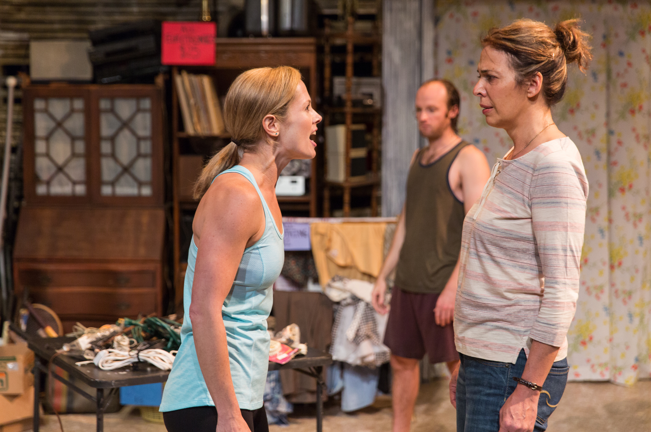 Rachael (Tamara Hickey) confronts Toni (Melinda Lopez) with Alex Pollock in rear in a scene from “Appropriate.” Photo: Nile Hawver/Nile Scott Shots.