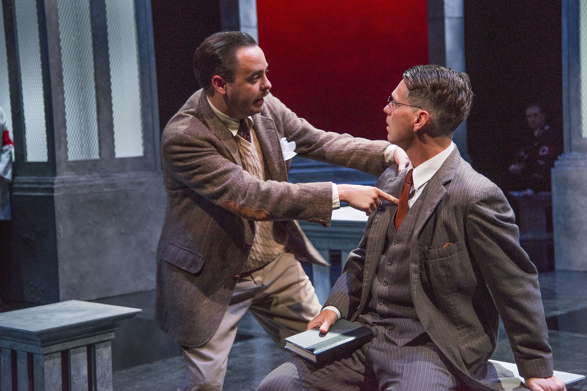 So he is slow to recognize the threat, trying to calm his Jewish friend Maurice (an excellent Tim Spears, “Amadeus” and “The Elephant Man” at New Rep) – his only real friend in the world – who is alarmed that Halder doesn’t seem to be taking the threat seriously.