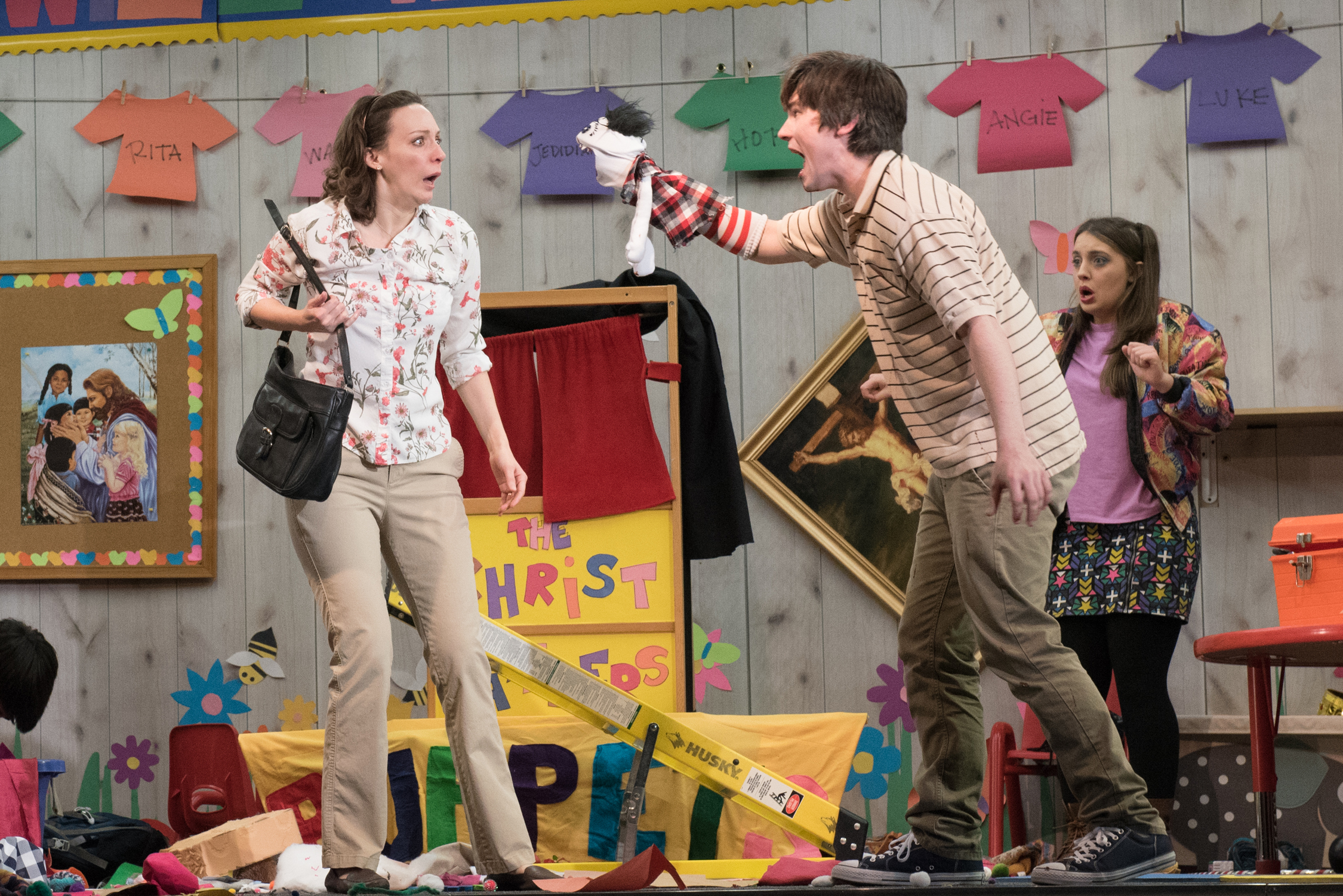 The Speakeasy Stage Company production of Robert Askins’ “Hand to God.” Directed by David R. Gammons. Scenic design by Christina Todesco. Costume design by Gail Astrid Buckley. Lighting design by Jeff Adelberg. Sound design by Andrew Duncan Will. In the Wimberly Theater in the Calderwood Pavilion of the Boston Center for the Arts through Feb. 4. speakeasystage.com.