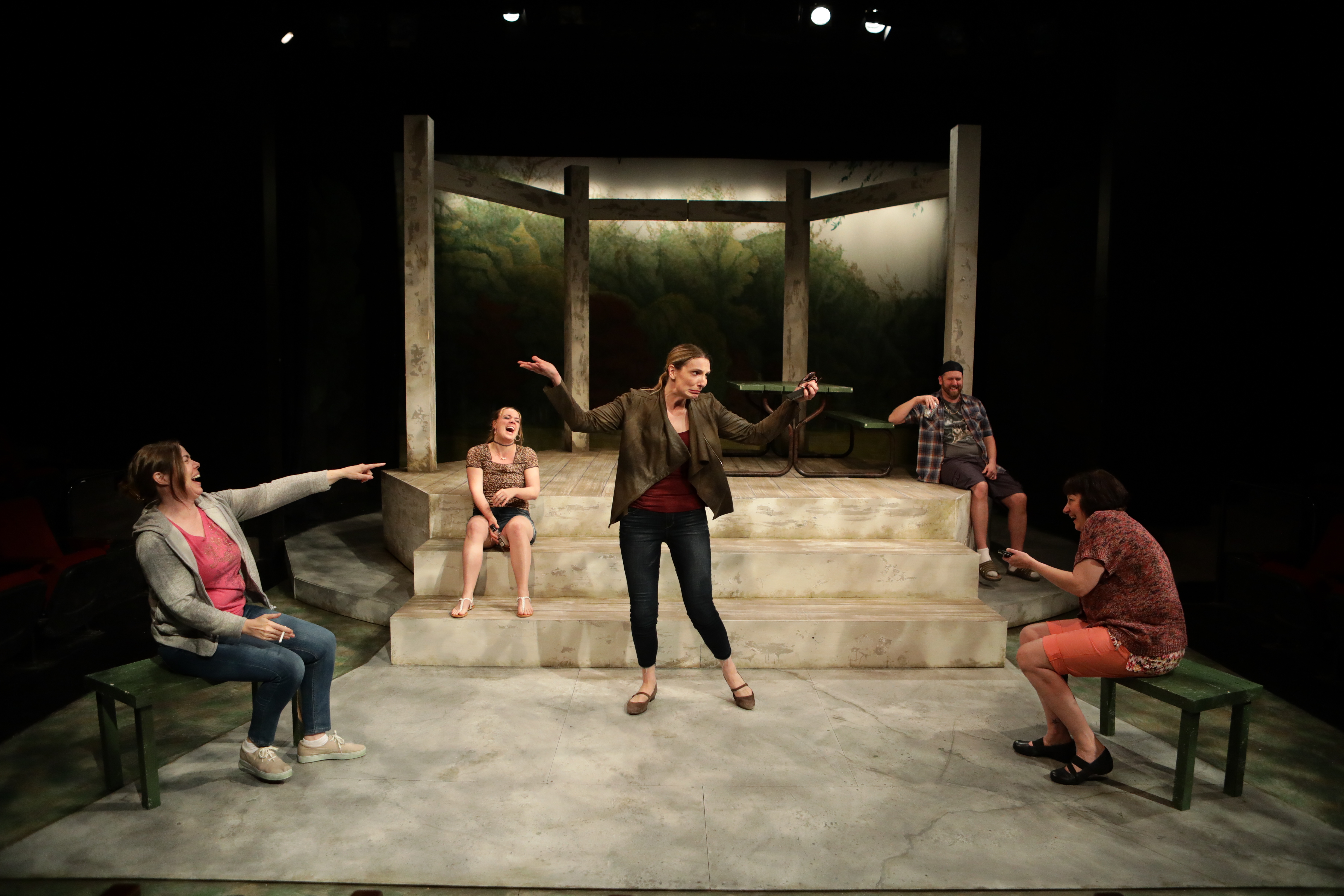 Christine Power, Sarah Elizabeth Bedard, Deb Martin, Bryan T. Donovan, and Adrianne Krstansky in “Barbecue.” Photo: Lyric Stage Company