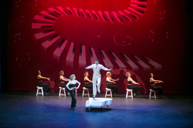 The dancing is simply wonderful, including the “Blue Skies” tap number that caps the first act, a marvelous display of skill, precision, and stamina. Then there’s the show-stopping “I Love a Piano” at the top of Act II, with ben Widmar as Phil and Sonon as Judy leading the way. Director McDaniel has recruited a strong company of hoofers who are able to keep pace with the talented principals.