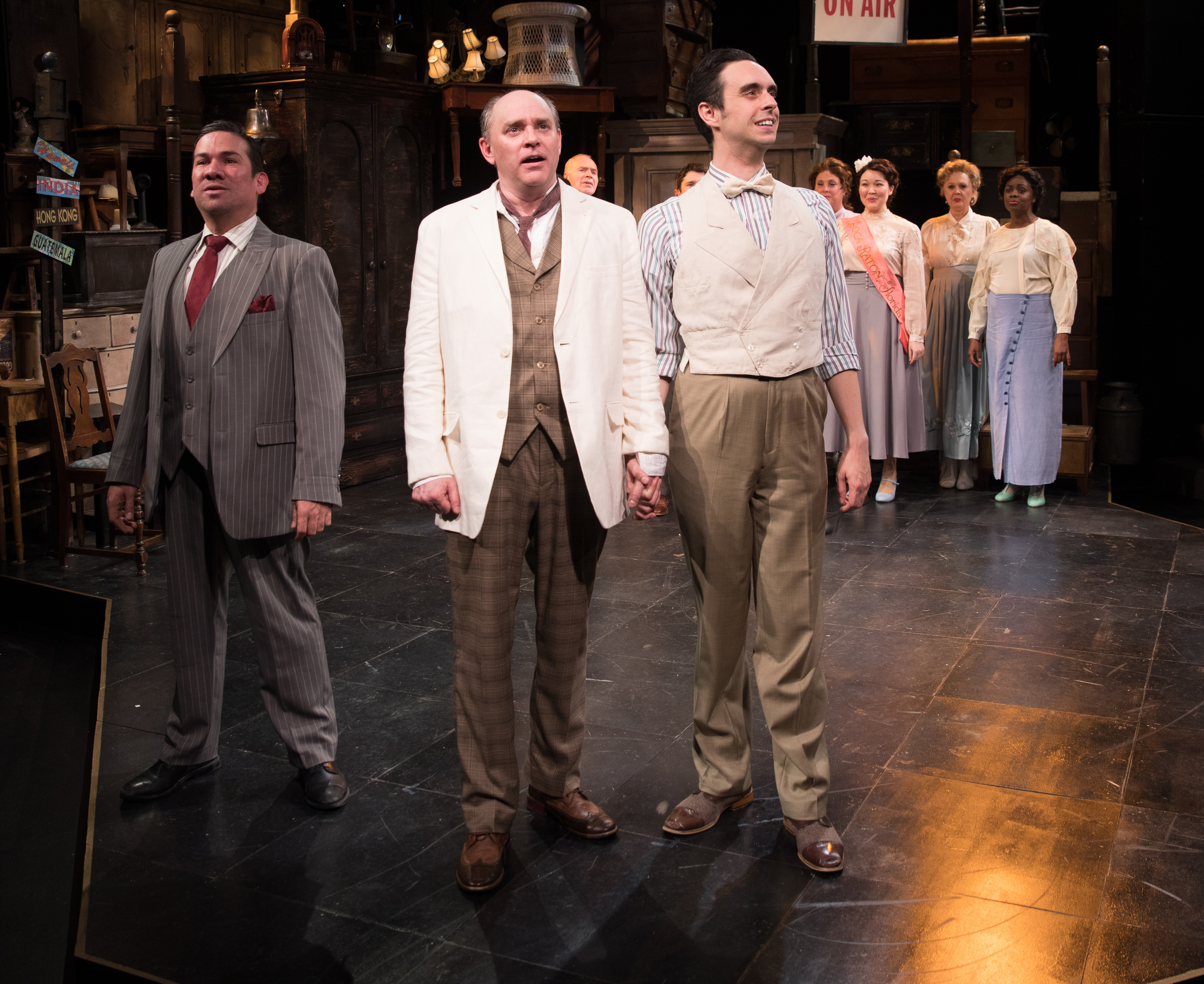 “Road Show” is a look at the Mizner brothers, entrepreneurs and con men in the early 20th Century. It’s not a spoiler to tell you the show begins where it ends, with the architect Addison Mizner on his deathbed and the rest of the company lambasting him in the number “Waste” because of the squandering of his formidable talent and the Florida land scandal that took him down.