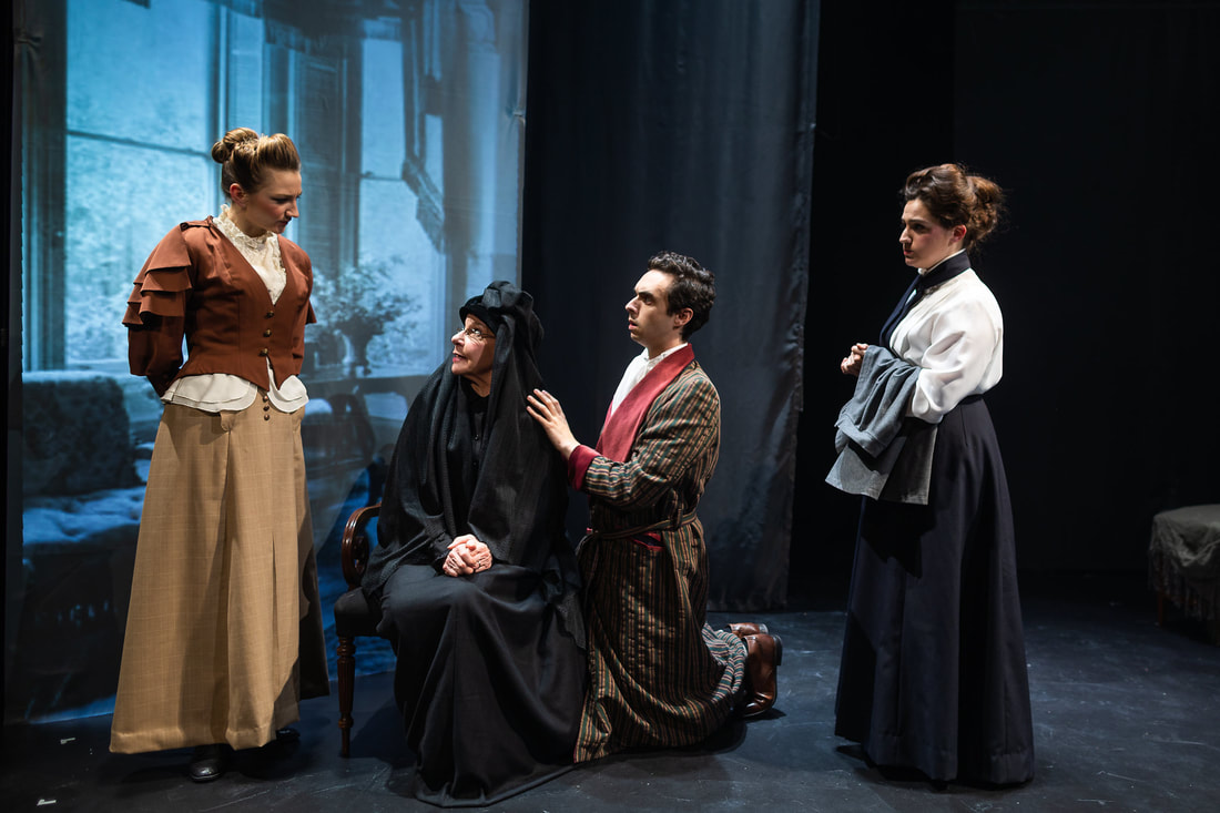 Deidre McCabe Gerrard ‘s Victorian-era garb is period-perfect, Nathan Leigh’s moody sound design complements the other design elements perfectly, as does Chris Fournier’s lighting, with shadows and silhouettes helping to set the mood.