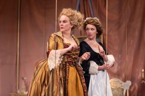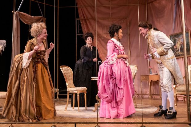 Set designer Kathryn Monthei has crafted a gilded birdcage of a set of Henriette’s sitting room and Gail Astrid Buckley’s costumes are sumptuously period-perfect.
