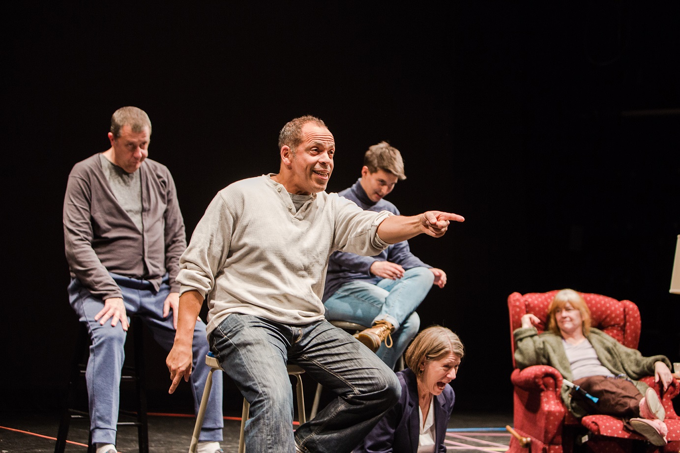 From the left: Daniel Boudreau, Joshua Wolf Coleman, Diana Lobontiu, Sebastian Ryder and Lisa Foley in “Well.” Photo: Helen Makadia