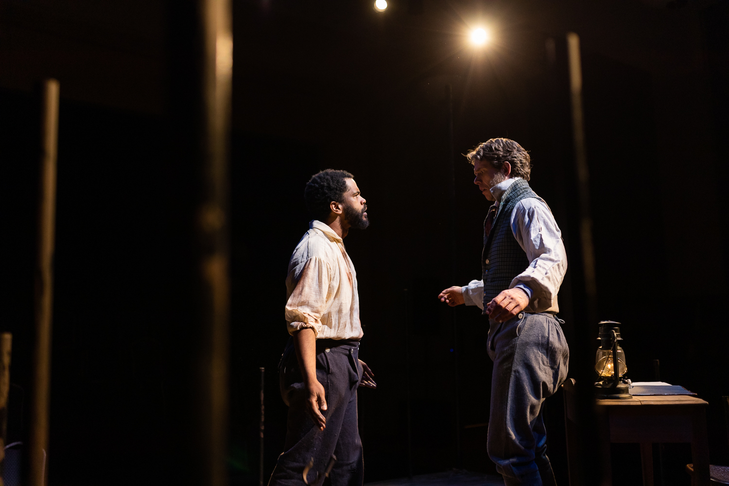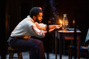 The Actors Shakespeare Project production of “Nat Turner in Jerusalem.” Written by Nathan Alan Davis. Directed by Benny Sato Ambush. Set design By Janie Howland . Lighting design by Aja Jackson. Costume design by A.W. Nadine Grant. Sound design and composer: Dewey Delay. At Hibernian Hall, 184 Dudley St., Roxbury through Feb. 24. actorsshakespeareproject.org