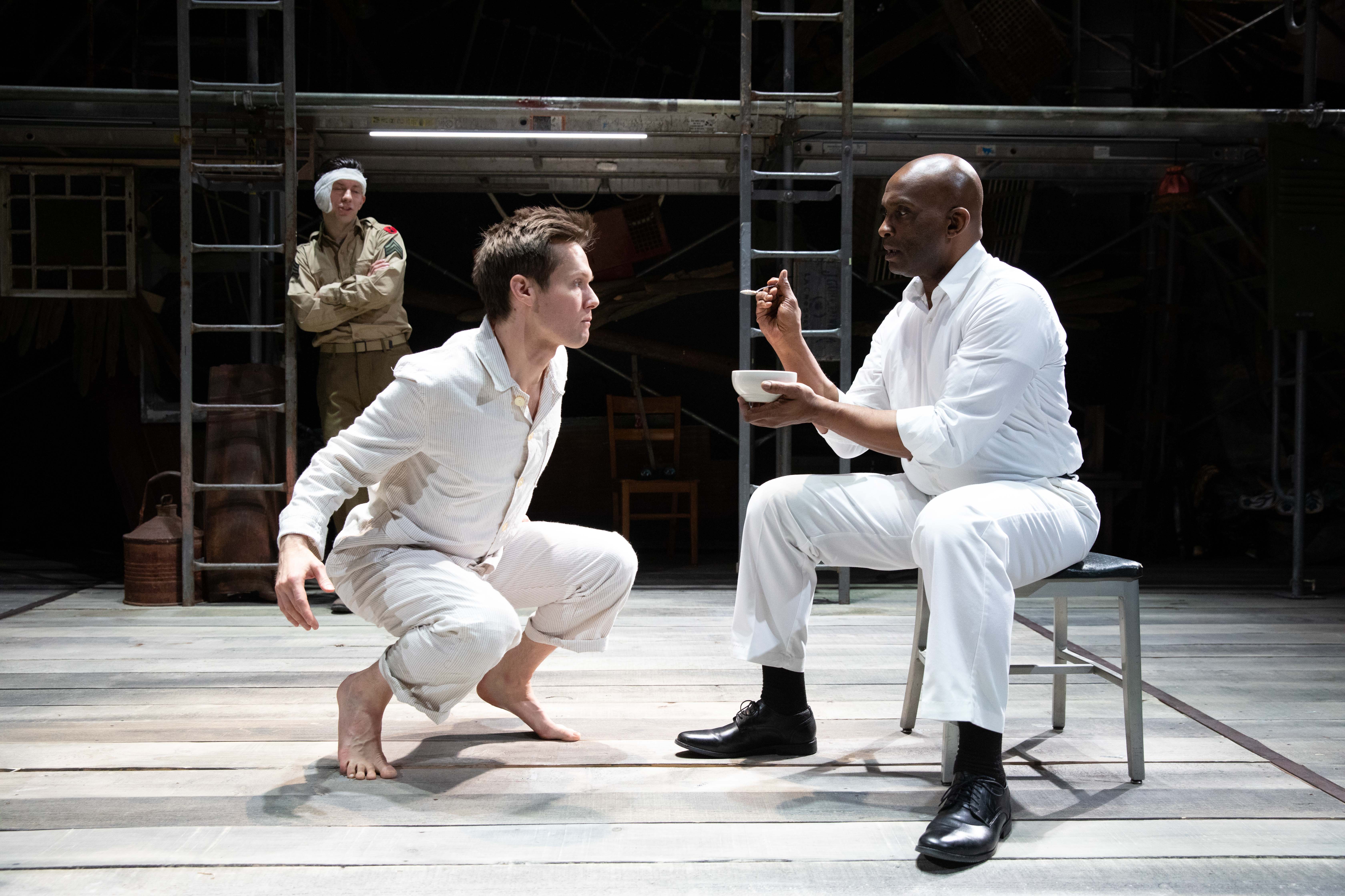 As the play opens, the older Al (Keith White), himself still suffering from war wounds, has been summonsed to a Army hospital in Kentucky to see if he can aid Birdy, (Will Taylor), who is shell-shocked and unresponsive, crouching in a bird-like stance and unable to even feed himself.