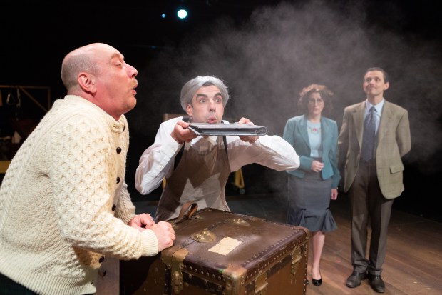 From the left: Amanda Collins, Paul Melendy, Lewis D. Wheeler and Gabriel Kuttner in “The 39 Steps.” Photo: Jason Grow