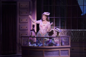 The production values are commensurate with a Tony-winning revival on Broadway. The gorgeous pastels of Santo Loquasto’s Tony Award-winning costumes fairly leap off the stage, and his sepia-toned backdrops convey the nostalgia of the turn of the century New York City. He also aces the organized chaos that is Vandergelder’s Feed and Grain in what was then the country town of Yonkers.
