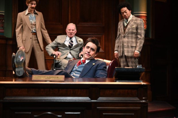And while Brant shows us the Dr. Jekyll side of Buddy — he also shows us the Mr. Hyde side, as federal prosecutor Richard Rose (one of many fine turns by Joe Wilson Jr.) did in his federal corruption trial, as he called .out Cianci for turning Providence into his “personal piggy bank.” The chilling assault on Ray DeLeo (Mauro Hantman) the man he believed was romantically involved with his estranged wife, is also front and center, forcing a no contest plea in court in 1984 and his first resignation. His second resignation came in 2002 after his conviction for racketeering conspiracy and a four-year sentence in federal prison. An earlier incident in college for which Buddy was never charged was also part of his past.