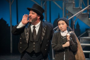 As Oliver Twist, young Ben Choi-Harris is a proven commodity, garnering two IRNE nominations for past performances and stealing scenes from veteran pros in the process. He has the requisite angelic voice and stage presence to put across “Where is Love?” and “Who Will Buy?”