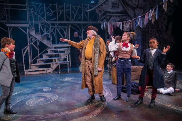 The New Repertory Company production of “Oliver!” Book, music and lyrics by Lionel Bart. Directed and choreographed by Michael J. Bobbitt. Scenic design by Luciana Stecconi. Lighting design by Frank Meissner. Sound design by Kevin L. Alexander. Costume design by Rachel Padula-Shufelt. At the Mosesian Center for the Arts through Dec. 29.newrep.org.