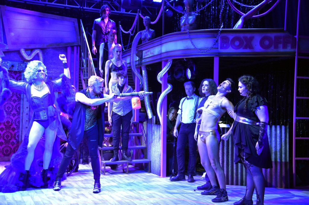 Then there are the slinky all-dancing, all-singing Phantoms, key to the many rousing production numbers such as the signature tune “The Time Warp.” They include Alexander Holden, Janis Hudson, H.C. Lee, Stevan Sawan, Lillie Reising, and Emma Kate Harris.