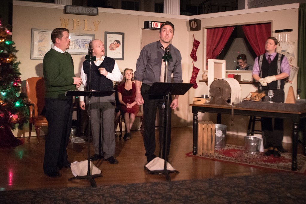 It is Christmas Eve 1946 in Studio A and its auditorium at radio station WPLY in Plymouth, complete with a lit applause sign to cue us audience members when it’s time to get loud.