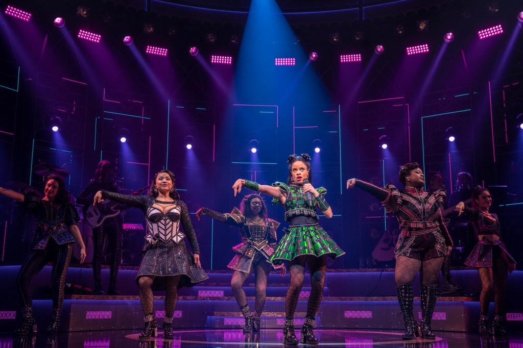 The lighting by Tim Deling is rock concert-ready, and Paul Gatehouse’s sound balances the demands of the performers with a marvelous four-piece band featuring conductor/keyboardist Jo Ann Daugherty, Janetta Goines on bass, Rose Laguana on guitars and Paige Durr on drums.