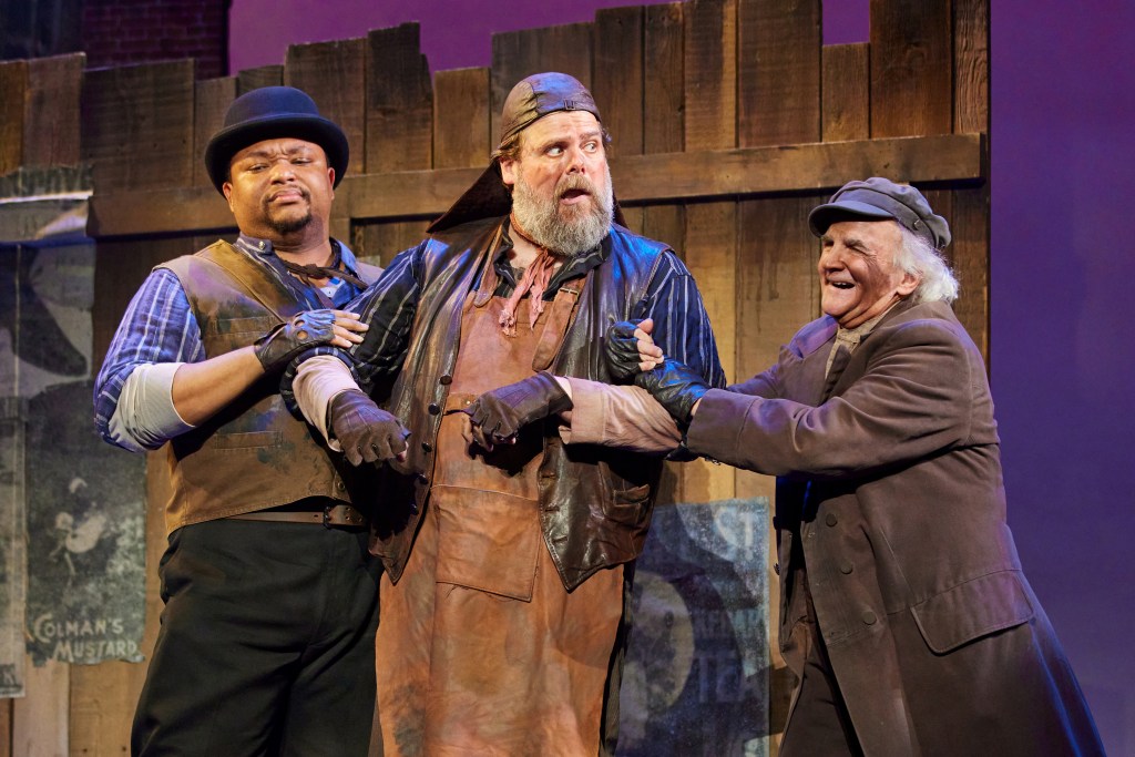 Michael Hegerty is simply wonderful as Alfred P. Doolittle, Liza’s wastrel father who, with the aid of pals Harry (Kevin D. O’Neil) and Jamie (Richard Coleman), explains his philosophy of life in the first act number “With a Little Bit of Luck” and then is equally eloquent in the pull-out-all-the-stops manic chaos of Act II’s “Get Me to the Church on Time.”