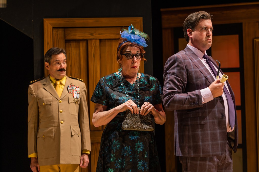Don’t forget the allegedly murderous widow Mrs. White (Sara Coombs), the timid, officious Mr. Green (Stewart Evan Smith), and the batty, neurotic Mrs. Peacock (Maureen Keiller). Taken together, they have enough baggage to fill a luggage carousel at Logan Airport. They’re all racing to find the murderer in Boddy Manor before the body count stacks up. Good luck with that.