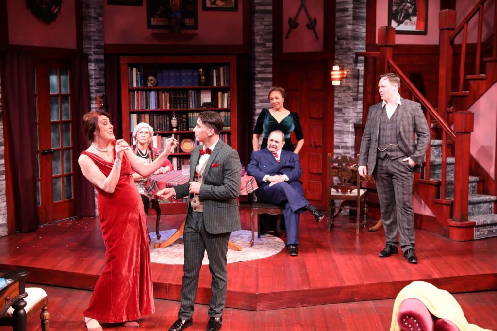 Murder mysteries thrive on lights flickering, thunder clapping, and shots ringing out and the potential for a technical disaster is always there, but John Malinowski’s lighting, Andrew Duncan Will’s sound, Chelsea Kerl’s costumes, and Jennifer Butler’s props all merge to create the murderous funhouse director Sullivan desired.