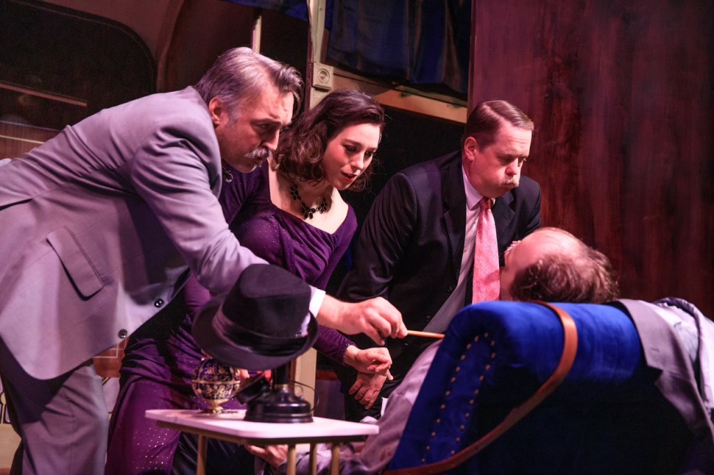 Americana’s co-artistic director Jesse Sullivan is a fine Poirot, sporting an impeccable Belgian (not French!) accent and the requisite iconic moustache. Sullivan’s Poirot is good and he knows it. He is understated but in firm control as he grills the assorted suspects, but also not above giving more than a passing glance to Countess Andrenyi, (Payton Gobeille) a mysterious, comely physician who is traveling alone.