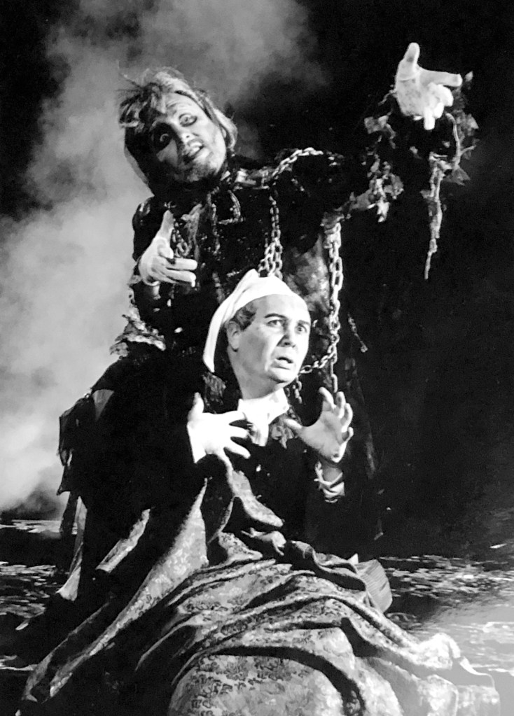 Then there is the “musical ghost story” side of the piece, when Marley’s Ghost rattles his chains and flies through the air, or the forbidding Ghost of Christmas Future escorts Scrooge through the graveyard, a time young children can be seen scurrying back to parents for protection.