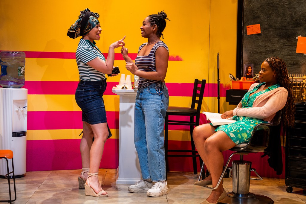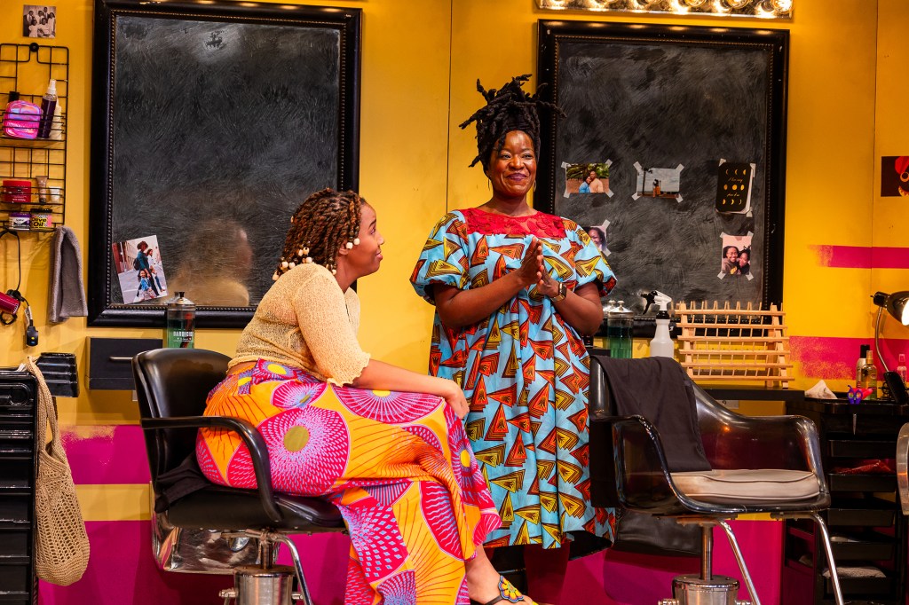 “Jaja” benefits from some sublime production values, from Jane E. Howland’s stylized painted shutters that are pulled back to reveal the colorful salon within, Danielle Domingue Sumi’s bright costumes, Christopher Brusberg’s lighting, Aubrey Dube’s sound design and Najda Vanterpool’s hair and wig design, while also helping the actors to skillfully portray the hair braiding itself.