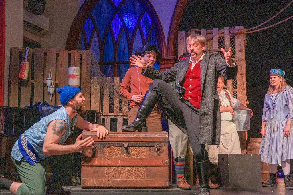 Erin Friday is the villainous Bill Slank, mate of The Neverland, and later, after the shipwreck — in Act II when the action moves to Mollusk Island — portrays a hilarious Fighting Prawn, the ally of the equally dangerous Hawking Clam, played by Karly Friday. Both get caught up in the race to get to the trunk with the goods.