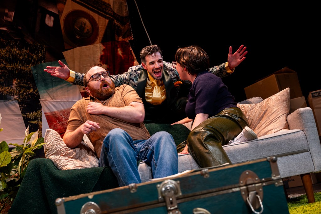 The Greater Boston Stage Company production of “Featherbaby.” Written by David Templeton. Directed by Weylin Symes. Scenic design by Katy Monthei. Lighting design by Matt Cost. Costume design by Deidre Gerrard. Sound design by MacKenzie Adamick. At the Greater Boston Stage Company through Sept. 28.greaterbostonstage.org