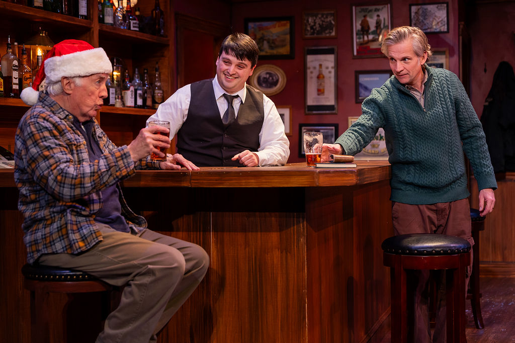 A succession of visitors to the pub highlights David’s sad situation. His brother Michael (Alex M. Jacobs) comes by, asking him to close the bar and join him and his family for a Christmas Eve meal. Frank hasn’t seen his nephews for years, and a third child is about to arrive, but he is “too busy” in the all-but-deserted bar.
